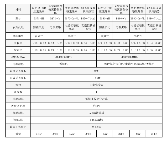 玻璃蓋板:平板集熱器采用布紋鋼化玻璃、低鐵布紋玻璃、低鐵超白鋼化玻璃、鋼化玻璃等多種玻璃蓋板。