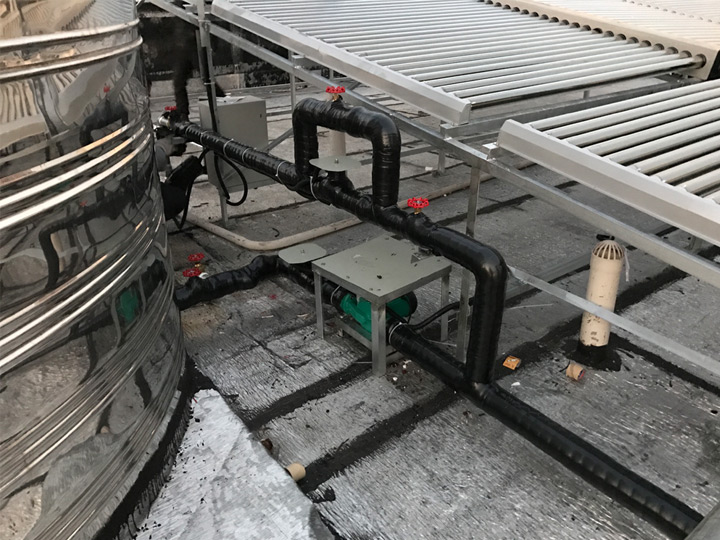 工程設(shè)備:太陽能集熱模塊,輔助加熱,不銹鋼保溫水箱