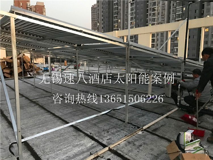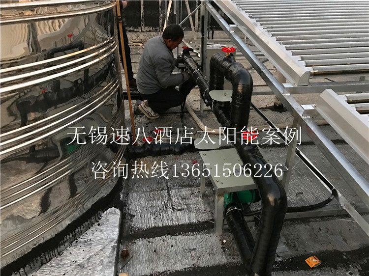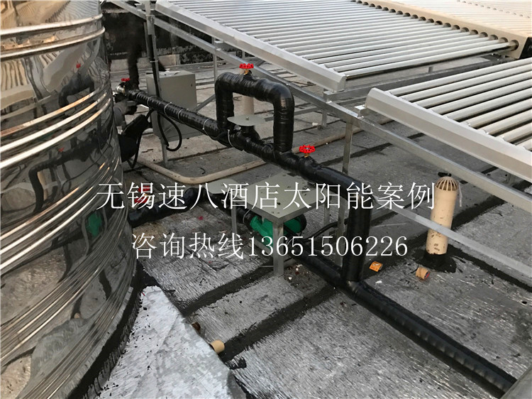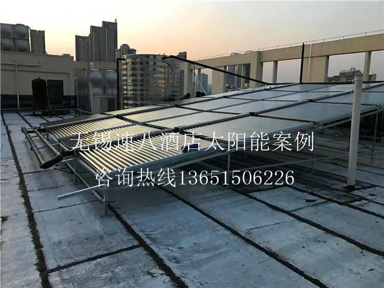 工程介紹:該工程為無錫速8酒店客房用熱水,該酒店以前用的鍋爐設(shè)備費(fèi)用太大,這次找到我公司為其增加太陽能設(shè)備,使用下來為酒店節(jié)省了一大筆費(fèi)用開支,客戶非常滿意,極力推薦使用。